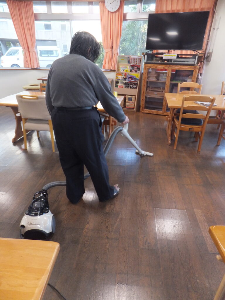 グループホームでは、入居者さまの生活支援の一環として毎週 月・水・金 にトイレ、風呂場、フロアーなどの共有スペースの清掃を行っています。